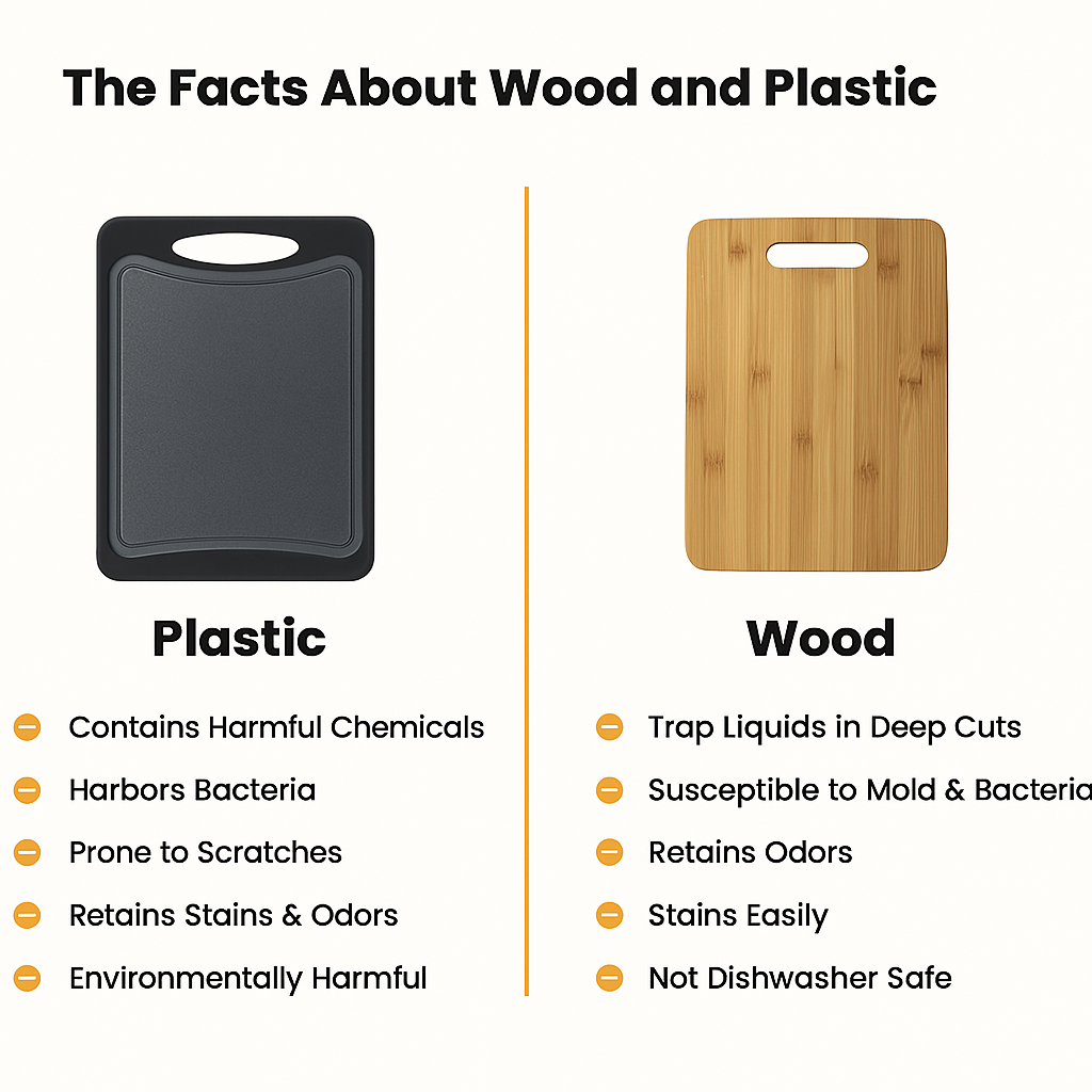 Plastic holds bacteria. Wood absorbs moisture. Bamboo grows mold.