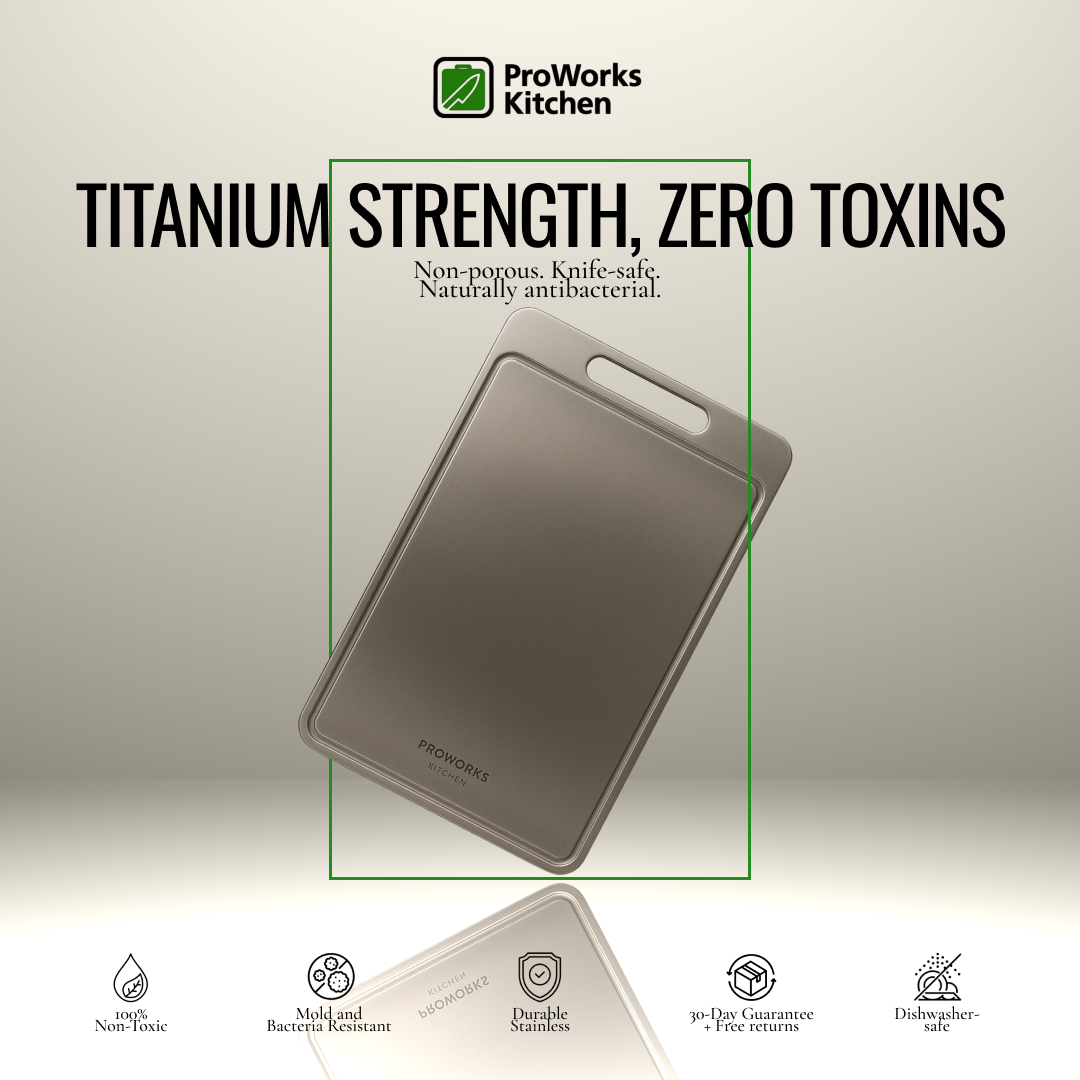 We’re not just about selling products—we’re about transforming your kitchen experience. Here’s how ProWorksKitchen’s Premium Titanium Cutting Board can make a difference: